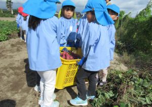 芋掘りに行きました。天気も良くみんな喜んでい芋掘りを楽しんでいました。